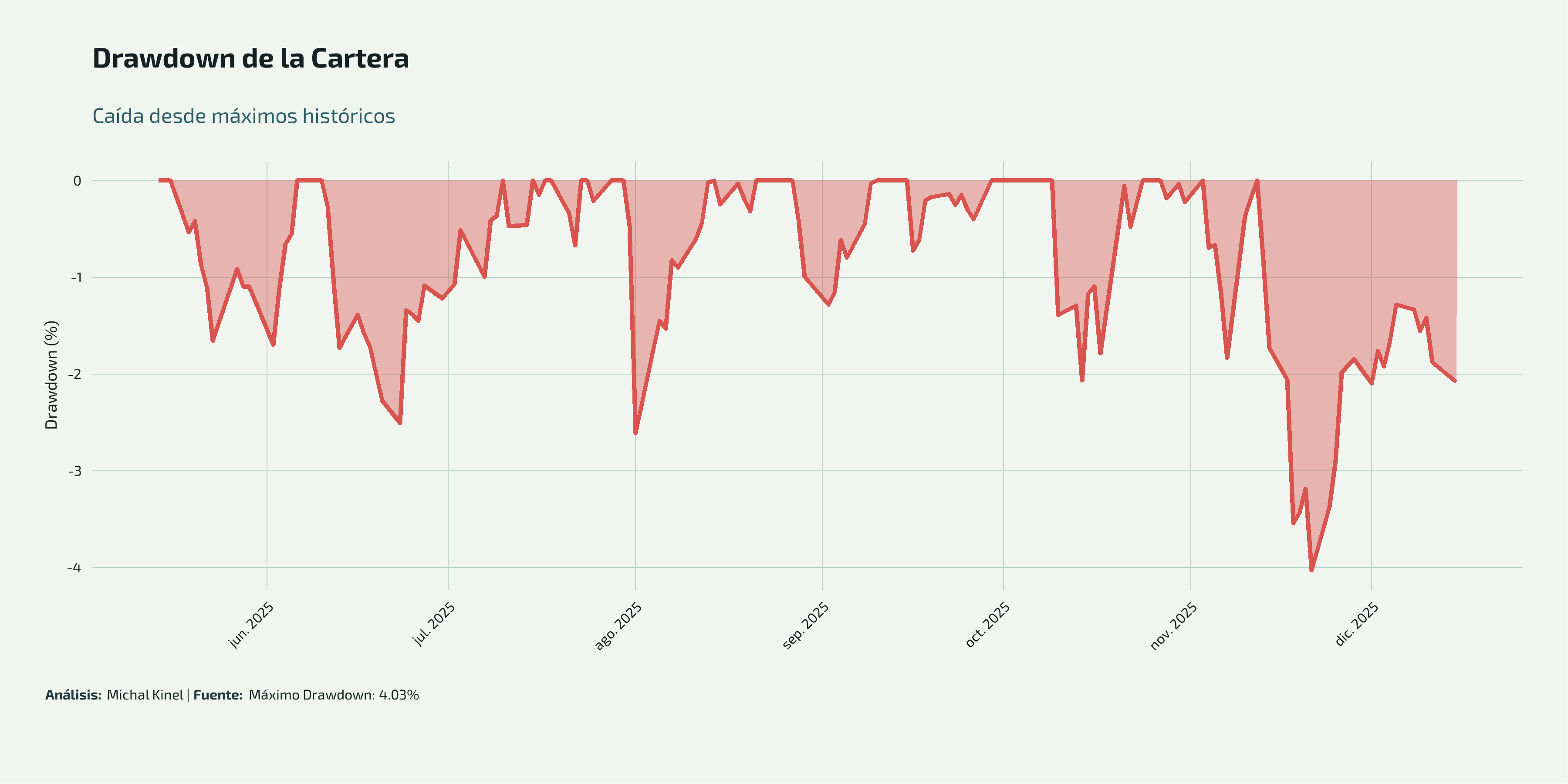 - Máximo Drawdown (caída máxima desde picos)
