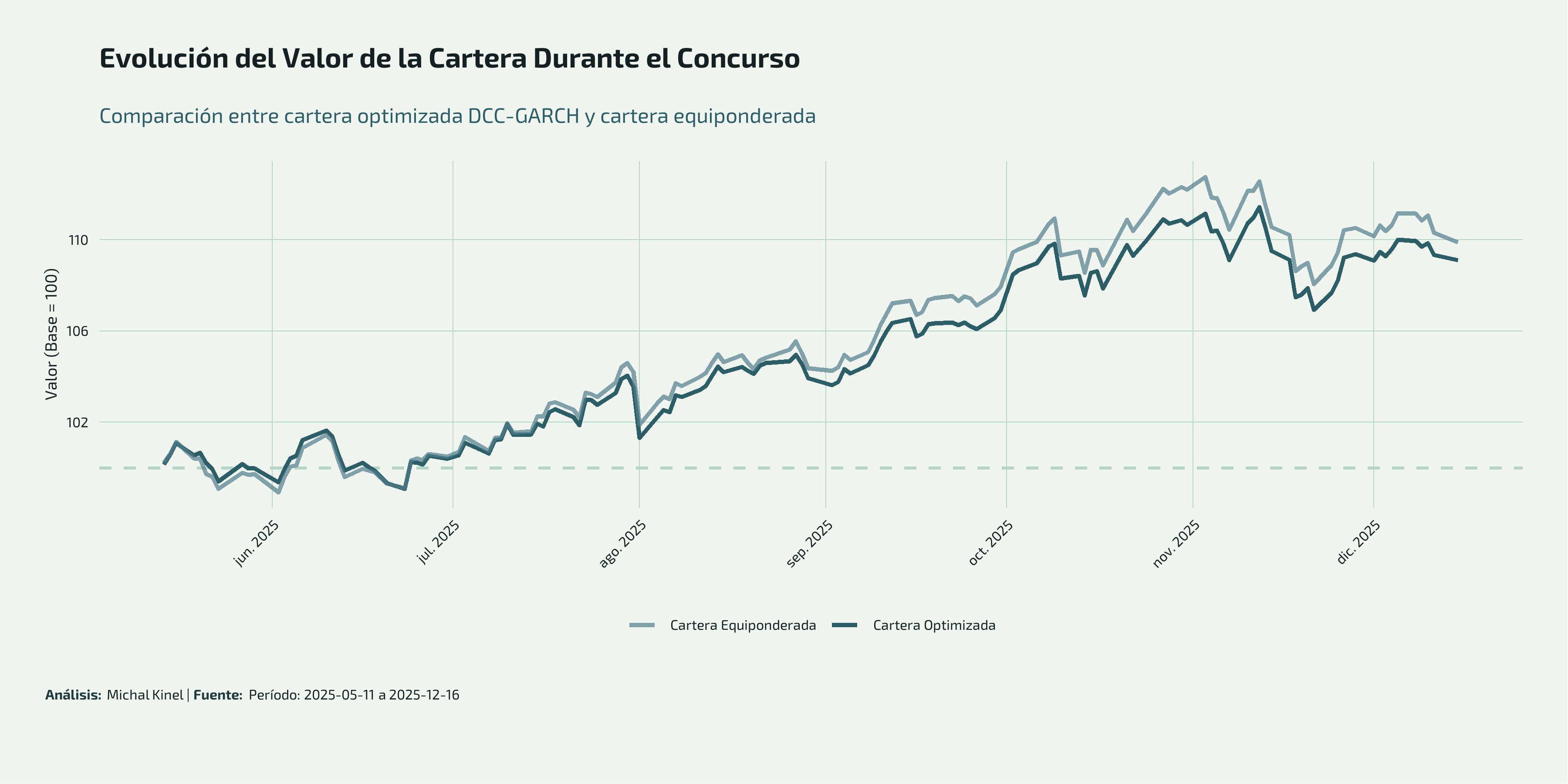 - Aplicar técnicas cuantitativas avanzadas (DCC-GARCH, optimización global) en un entorno competitivo real