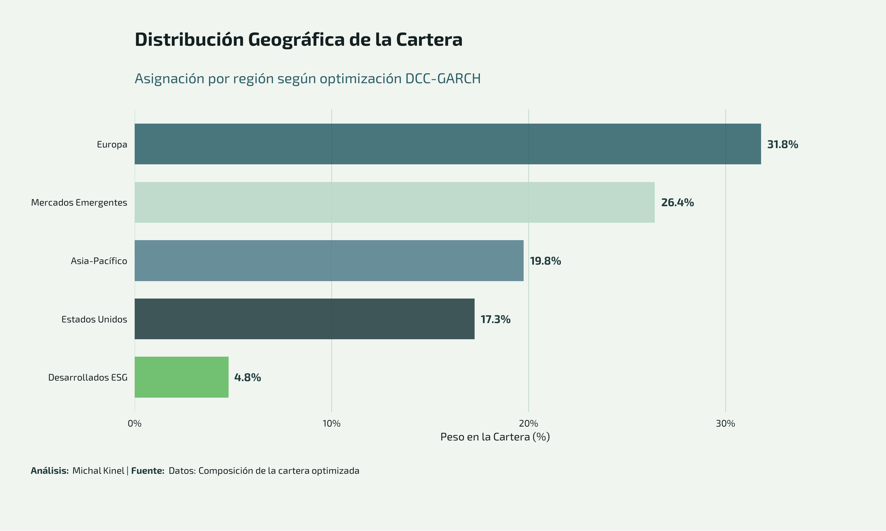 Lección: En mercados alcistas con activos de alta performance (emergentes en este caso), estrategias simples pueden superar a la optimización sofisticada. La optimización DCC-GARCH priorizó control de riesgo sobre retornos máximos, que era su objetivo diseñado.